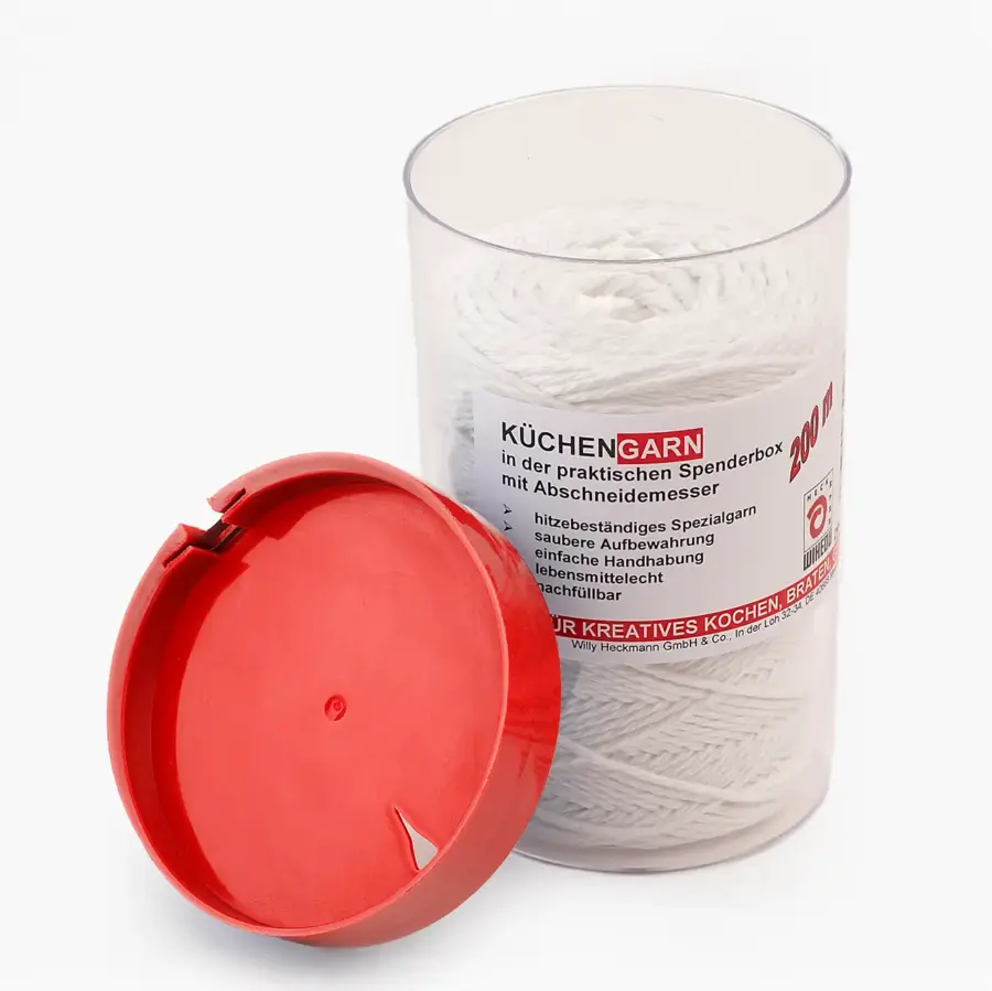 Du kochst nicht nur ab und zu, sondern im großen Stil? Dann brauchst du Material, das mithalten kann. Hier ist das Profi-Tool für Langstreckenköche in der großen Ausführung. Statt der üblichen kleinen Menge bekommst du hier satte 200 Meter unseres besten Spezialgarns in der standfesten XXL-Kordelbox. Perfekt geeignet für Braten, Rouladen und Wurst im Dauereinsatz.