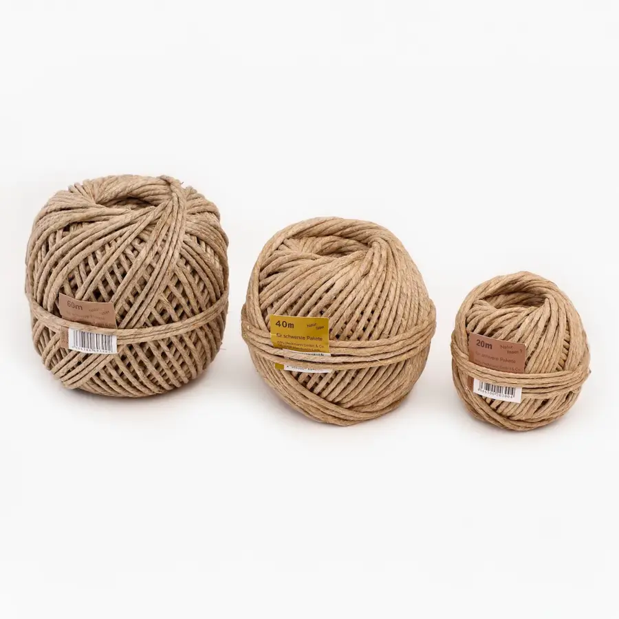 Du dachtest, für solche Gewichte braucht man Stahlbänder oder dickes Plastik? Falsch gedacht. Unsere stärkste Flachs-Kordel beweist, was die Natur kann. Ausgelegt für Gewichte bis 24 kg, ist dies das zweitstärkste Material in unserem Natursortiment.